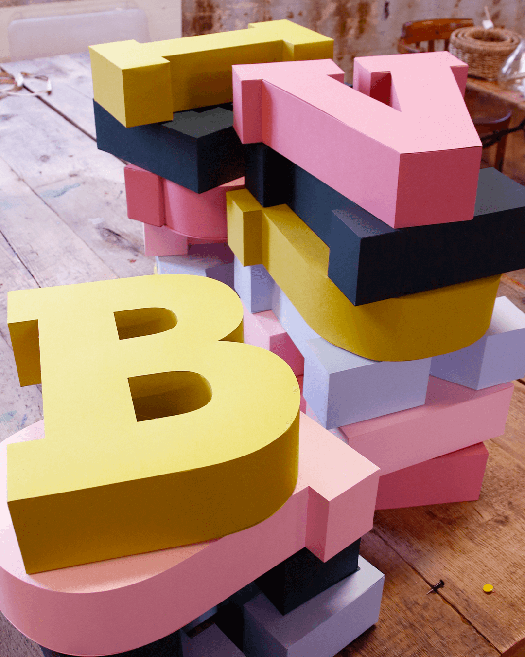 I was commissioned by SCRAP to create a set of 3D paper letters for their Creative Reuse Hub. I used paper from their shop using their colour scheme. This was the first time I had created a 3D serif font and enjoyed designing the complex templates for each letter.